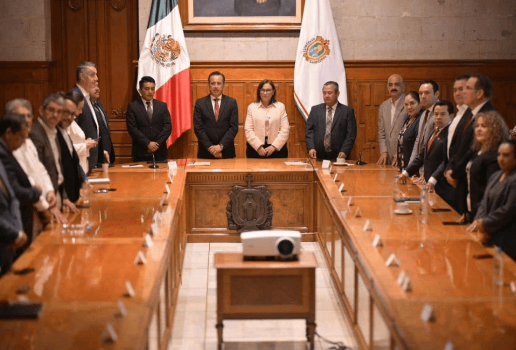 Una reunión especial se llevó a cabo en la sala de banderas de Palacio de Gobierno, ahí se firmó el Acta de Transición de la Administración Pública Estatal 2019-2024 y 2024-2030, encabezado y firmado por, Cuitláhuac García Jiménez y Rocío Nahle García.
