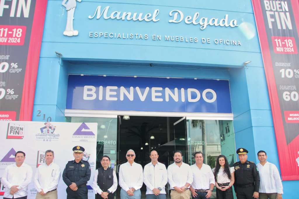 Durante el evento, estuvieron presentes el Mtro. Martín Esaú Velázquez, responsable de la Profeco en Yucatán; Lic. Alberto Pinto Escamilla, delegado estatal de la Condusef; Mtro. Víctor Antonio Bastida, Administrador Desconcentrado de Servicios al Contribuyente en Yucatán; Lic. Alfonso Miguel Thomassiny, delegado del Instituto del Fondo Nacional para el Consumo de los Trabajadores (INFONACOT); y Lic. Raúl Delgado, director general de la tienda anfitriona, Manuel Delgado. Juntos realizaron un recorrido por la tienda, y la CANACO efectuó la primera compra simbólica del Buen Fin: un escritorio, como muestra del apoyo al comercio local.