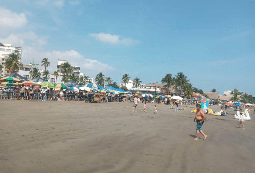 Al mediodía del lunes, último día feriado del ´puente´ del 16, 17 y 18 de noviembre por el 114 aniversario del inicio de la Revolución Mexicana, la playa Villa del Mar contaba con algunos paseantes que se bañaban en el mar, mientras los vendedores deambulaban en busca de ganar unos pesos.