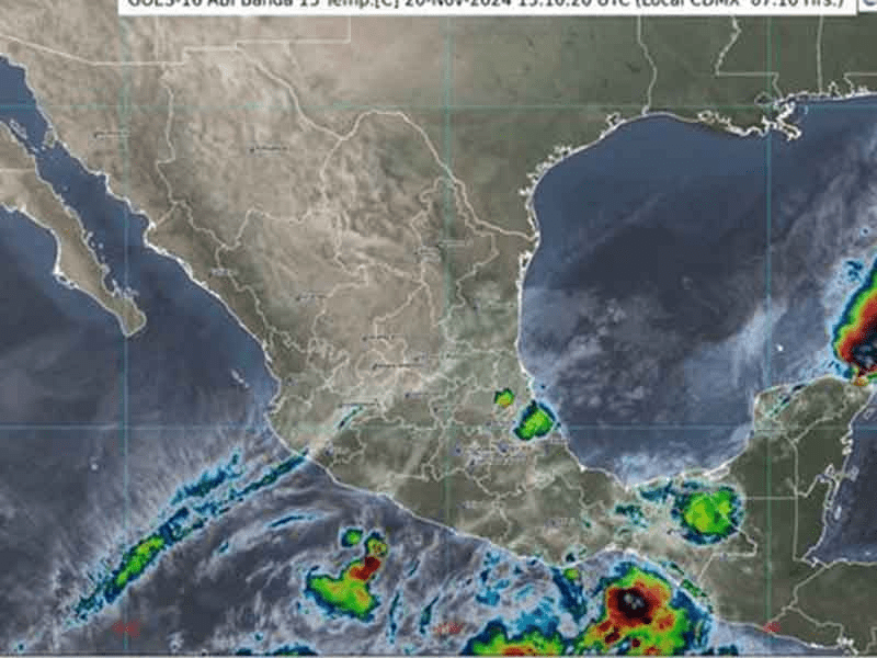 Asimismo, el ingreso de aire húmedo proveniente del océano Pacífico y la proximidad de la vaguada monzónica frente a costas de Pacífico Sur mexicano originarán lluvias puntuales fuertes en Guerrero e intervalos de chubascos en Colima, Guanajuato, Jalisco y Michoacán.
