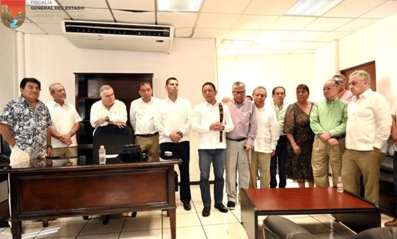 El Fiscal General del Estado, Jorge Luis Llaven Abarca, acompañado del próximo titular de la nueva Secretaría de Seguridad del Pueblo, Oscar Alberto Aparicio Avendaño y del Subsecretario de Inteligencia e Investigación, José Octavio García Macías, realizó en la ciudad de Tapachula la presentación y toma de posesión del Fiscal de Distrito Fronterizo Costa, César Amín González Orantes ante la presencia del personal de la institución y de medios de comunicación con sede en esa ciudad.