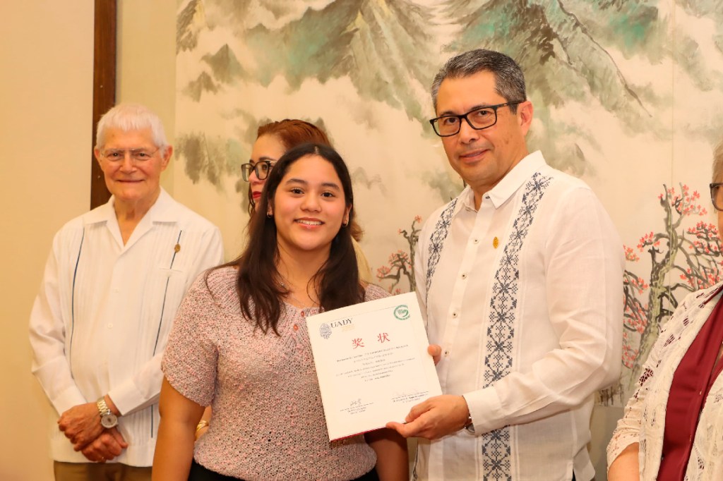 También agradeció la labor de las y los profesores del Instituto Confucio de la UADY, tanto locales como nativos, por su dedicación, cuyo esfuerzo se ha reflejado en los logros obtenidos por sus estudiantes, quienes han alcanzado los primeros lugares a nivel nacional.