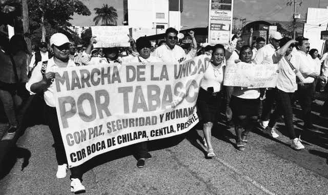 Una marcha por la paz organizada por el partido en el poder en Tabasco, Morena, tenía como fin principal mostrar el apoyo incondicional a las estrategias gubernamentales en el combate a la delincuencia en la entidad, misma que fue manchada por distintos eventos criminales, como un mensaje a los miles de marchistas que, a decir de muchas personas, fueron en su mayoría obligadas a asistir con la amenaza de que de no hacerlo les descontarían un día de sueldo. O sea, eran burócratas del gobierno y los 17 municipios.