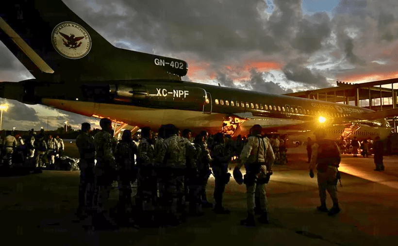 La movilización comenzó alrededor de las 6:00 a.m., cuando cuatro camiones con efectivos de la Guardia Nacional se dirigieron al Aeropuerto Internacional de Cancún, donde abordaron el avión GN-402 XC-NPF. Aunque inicialmente se mencionó que viajarían 400 agentes, finalmente solo 120 fueron enviados en esta primera fase. En total, 800 elementos de Quintana Roo serán trasladados en los próximos días a distintos puntos de la frontera.