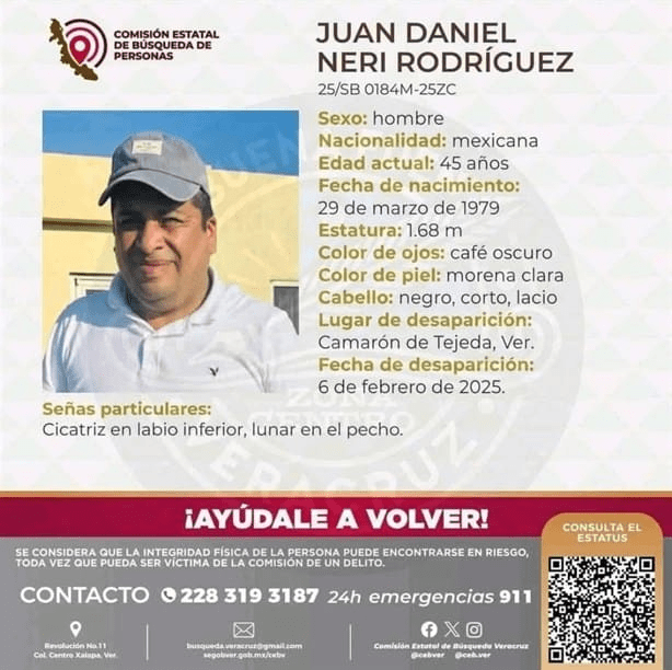 Sus familiares solicitan a la ciudadanía en general que si llegan a tener informes acerca de su paradero, se pueden comunicar al 911 de Emergencias y también al número telefónico 228 319 3187.