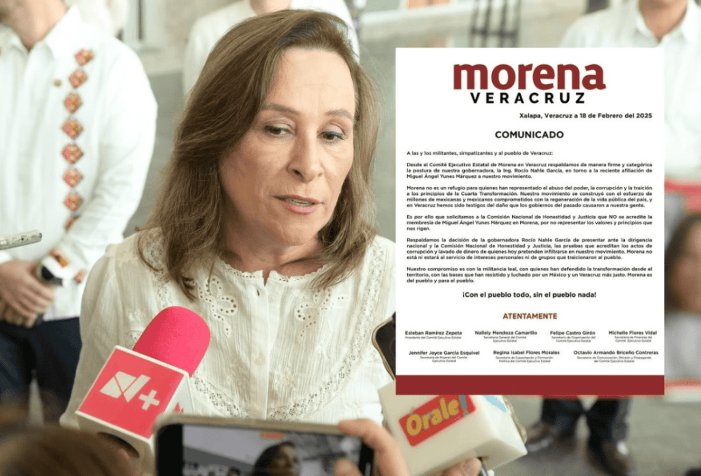 Más tarde la dirigencia de Morena en Veracruz a través de un comunicado expresó que resspaldan de manera firme y categórica la postura la gobernadora Rocío Nahle respecto a la afiliación del hijo del exgobernador Miguel Ángel Yunes Linares en Morena.