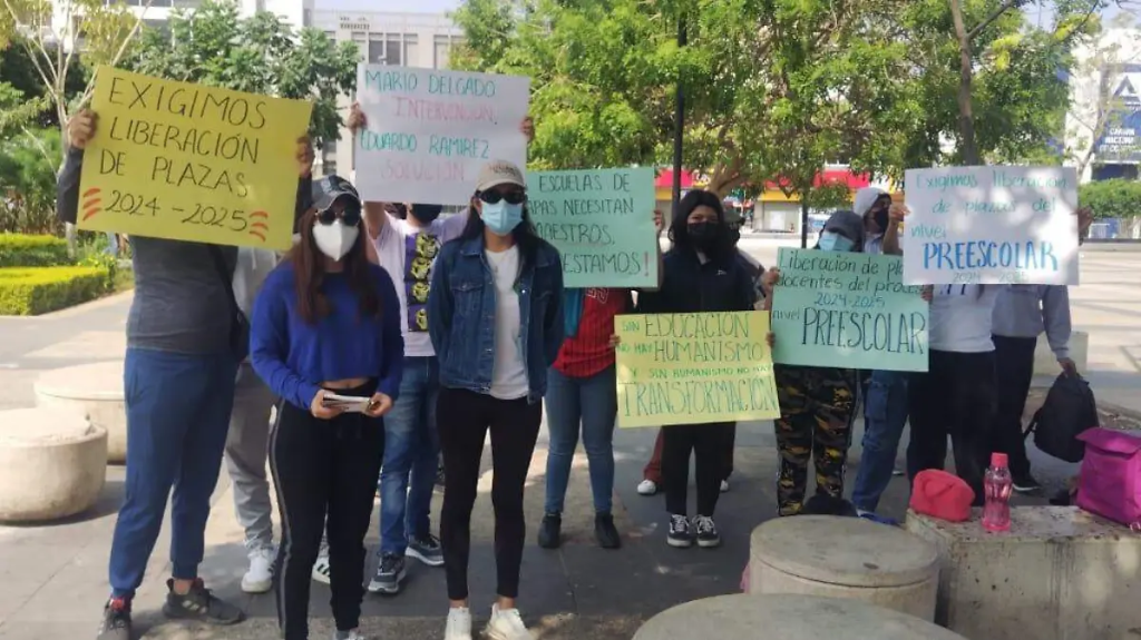 Sin dar nombres, un grupo de hombres y mujeres se manifestó en la Plaza Central de Tuxtla Gutiérrez para exigir su incorporación. Denunciaron que, en la actual administración, solo se han otorgado 37 plazas en telesecundaria cuando hay 400 aspirantes; una plaza en Cívica y Ética con 130 aspirantes; una plaza en Educación Física con 70 aspirantes; tres en Química con 76 aspirantes; seis en Historia con 75 aspirantes; diez en Matemáticas con 80 aspirantes; nueve en Español y tres en Geografía.