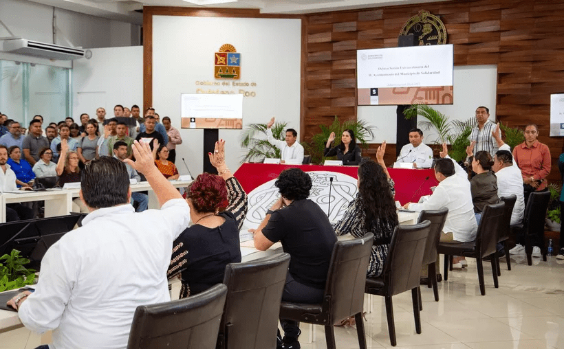 En sesión extraordinaria, el Cabildo aprobó el acuerdo para remitir al Congreso del Estado la iniciativa de decreto por el que se reforman los artículos 127, 128, 134 y 135 de la Constitución Política del Estado y los artículos 8 y 12 de la Ley de los Municipios de Quintana Roo, referente al cambio de nombre del municipio de Solidaridad por Playa del Carmen.