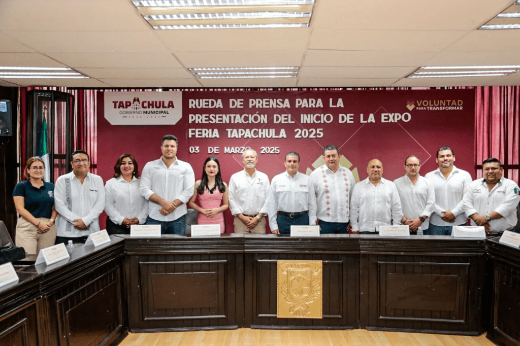 El alcalde Yamil Melgar asistió como invitado especial a la conferencia de prensa para dar a conocer los pormenores de la feria a realizarse del 7 al 16 de marzo. Tapachula, Chiapas.- El presidente municipal de Tapachula, refrendó su compromiso para apoyar al desarrollo de la Expo Feria Tapachula 2025 que iniciará el viernes 7 de marzo, con el corte de listón y coronación de la Reina Electa Angie Vázquez.