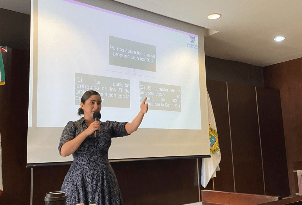 Durante una conferencia en la Escuela de Derecho A.C. en Veracruz, la especialista subrayó la importancia de que los jueces y magistrados apliquen metodologías con perspectiva de género para visibilizar las desigualdades estructurales en estos casos. Además, recordó que existen criterios jurisprudenciales de organismos como la Corte Interamericana de Derechos Humanos y la SCJN que fortalecen la interpretación de estas situaciones.