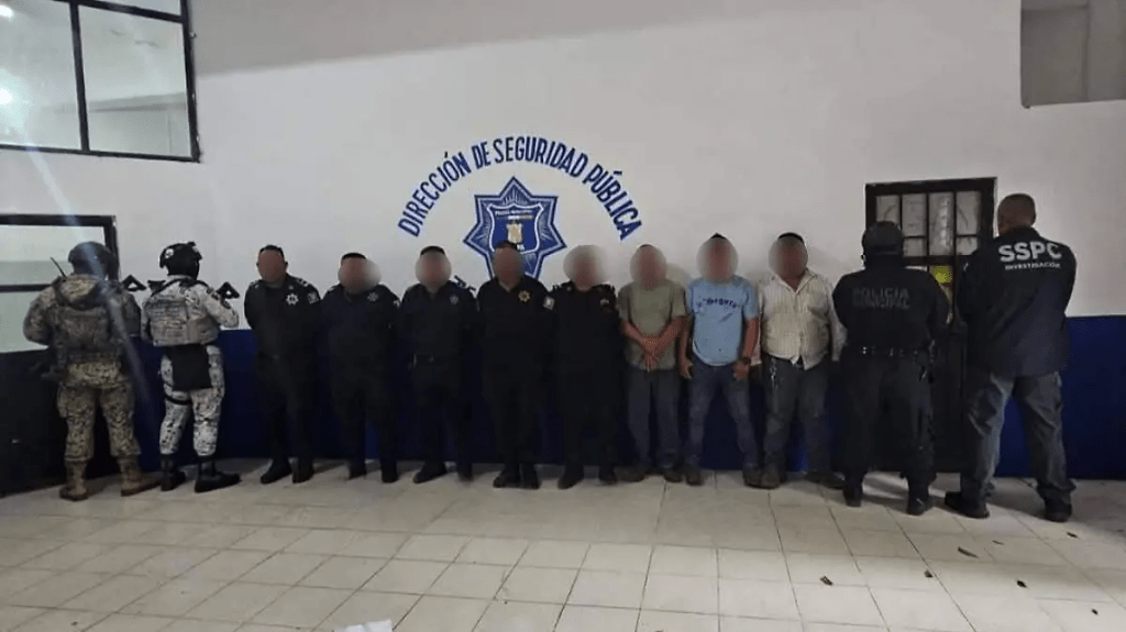 Cinco elementos policiales originarios de Reforma, Chiapas, fueron asegurados por autoridades tabasqueñas durante un operativo conjunto con fuerzas federales y estatales, mientras escoltaban unidades de transporte que trasladaban ganado.