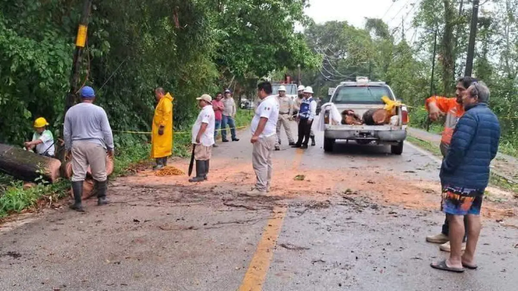 Por otro lado, en el municipio de Salto de Agua, personal de Protección Civil y Obras Públicas realizaron labores similares, retirando árboles y ramas caídas en la carretera que conecta la cabecera municipal con la comunidad Paso Naranjo, a la altura del balneario Tuli-Ha. Además, llevaron a cabo la limpieza del puente, retirando ramas y palos caídos, con el objetivo de salvaguardar la integridad física de las personas y vehículos que transitan por la zona.