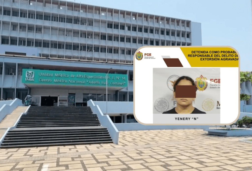 La Fiscalía de Veracruz llevó a cabo la detención de Yenery «N», como presunta responsable del delito de extorsión agravada, misma que fuera ubicada en el Instituto Mexicano del Seguro Social (IMSS) de Cuauhtémoc, en la ciudad de Veracruz.