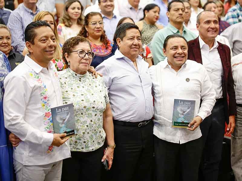 Durante su mensaje, el autor de la obra, el fiscal Llaven Abarca, relató y describió las particularidades y generalidades que abarcan este libro, en el que destacó los conceptos de los tipos de paz, y las actuaciones que esta administración ha implementado con el objetivo de tener en nuestro Chiapas una paz positiva.