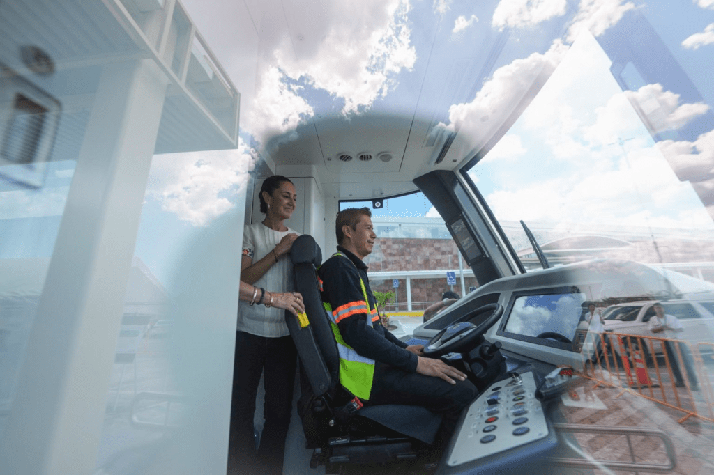 La Presidenta recibe explicación de un operador del vagón del tren Ligero.