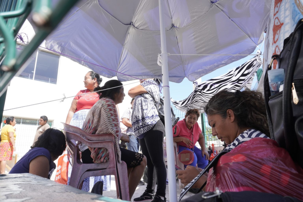 “Pues aquí estamos, ya acomodamos todo al interior porque no hay de otra, pero ya pedimos algo para comer y para aguantar hasta que tengamos noticias de nuestros familiares”, comentó Martha Fernández, mientras se organizaba junto a otras personas que buscaban refugio en la mínima sombra disponible.