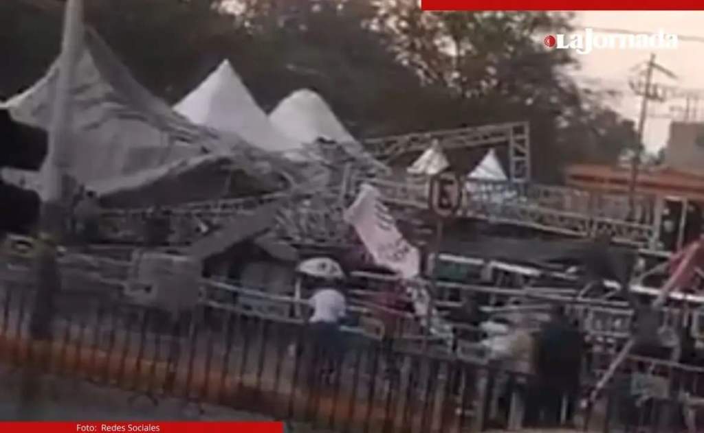 La estructura metálica que sostendría las luces y sonido para un evento por el Día de las Madres en la alcaldía Gustavo A. Madero -donde se presentarían Las Grandiosas- colapsó por los fuertes vientos que se registran esta tarde en la Ciudad de México; se reportan al menos siete personas lesionadas.