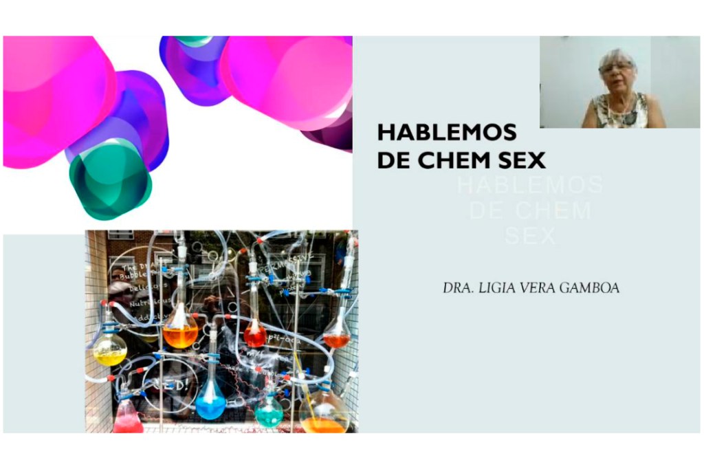 Durante la plática, la especialista detalló que el término “chemsex” es una abreviatura de las palabras en inglés: chemicals y sex; se trata de un fenómeno relativamente reciente, que consiste en el uso de drogas psicoactivas con el objetivo de tener relaciones sexuales durante un largo período de tiempo, incluso varios días.