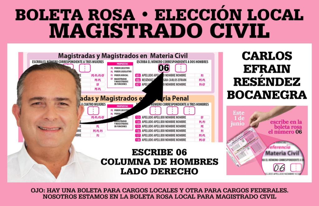 *Armagedón**“Tus estatutos son mi herencia permanente; son el regocijo de mi corazón”**Salmos 119:111**Al pueblo le interesan los hechos* *Alfredo A. Calderón Cámara**alfredocalderon1960@gmail.com**Carlos Efraín Reséndez Bocanegra trae una campaña en territorio cómo único medio de conocer cara a cara la forma en que un servidor público del nivel que sea, desde el más modesto hasta él que es magistrado presidente del Tribunal Superior de Justicia en Tabasco, se acerca al pueblo para conocer de viva voz los pensamientos, las reflexiones y las demandas sociales que les hagan reflexionar y los ayudan a mantenerse en el camino que quiere la mayoría de los tabasqueños**Al estar cerca del pueblo es la única forma de conocer el sentir en el vertedero social la voz sin simulaciones de una sociedad que habla de sus demandas y aspiraciones para ser mejor, de los errores que han cometido quienes antes han estado en la misma silla, yerros y equivocaciones que siempre pueden ser enmendados; eso es lo que recibe el titular del Poder Judicial al salir a caminar casa por casa dándose a conocer y pidiendo la confianza social del voto para este 1 de junio**Ayer desde la cuna de Gregorio Méndez y las jícaras labradas, Carlos Efraín Reséndez al igual que tantas veces lo hiciera su señor padre, recorrió las calles, saludando casa por casa, haciendo el compromiso de ir tras la consolidación de un poder judicial sin corrupción, cercano a la gente, ahí, en el territorio conociendo a unos y reconociendo a otros que ya ha saludado antes en los recorridos en territorio que ha realizado con el gobernador Javier May; esa confianza social sólo se logra mirando cara a cara a la gente**Siendo el día de celebrar a los maestros, quienes por generaciones han formado, en su caminar como candidato buscando el voto, saludó, conversó y estrechó lazos con la maestra Rosalba Hernández, toda una institución educativa en Jalpa de Méndez que gracias a su labor de años y años frente a grupos, logró el respeto de todo el municipio, una dama que abiertamente dejo el compromiso de fomentar y participar en las elecciones judiciales a celebrarse el primer domingo de junio**Ubicado en la boleta rosa con el número 06 en las próximas elecciones del Poder Judicial, Carlos Efraín Reséndez Bocanegra va puesto y dispuesto a poner todo su esfuerzo para sacar adelante las tareas a las que se ha comprometido con la sociedad en su recorrido por territorio, la principal tarea es restaurar el poder judicial lejos del tufo de corrupción que dejo a su paso la administración anterior y en los hechos Reséndez Bocanegra dejará constancia de cumplir su palabra y compromiso porque al pueblo lo que le interesan son los hechos**EL SEPTIMO SELLO**Al senador Adán Augusto López Hernández no dejan de brotarle a diario las grotescas pústulas de corrupción que lo tienen ubicado en el ámbito social como uno de los personajes más corruptos de la política nacional; ahora, de nueva cuenta Latinus y el periodista Carlos Loret de Mola, con documentos que avalaron el reportaje hizo cera y pabilo, dieron a conocer tres de las empresas que al amparo del poder público han hecho millonarios negocios; cómo dijera el reportaje: dónde quiera que va Adán Augusto ahí están esas tres empresas cobrando millonarias cantidades**SEPTIMA TROMPETA**Demasiada repercusión obtuvo la entrega de ayer en la cual se dio a conocer que el Congreso del Estado aprobó la despenalización del aborto hasta las 12 semanas de gestación; 33 votos a favor salvo el rechazo en contra de los valientes votos de la diputada María Lourdes Morales López y del diputado Fabián Granier Calles, quienes defendieron el derecho a la vida desde la misma concepción; de los demás diputados un lector hizo llegar este comentario al reportero: “estos diputados no tienen materia gris, sino heces, defienden que los animales no sean maltratados; pero, aprueban matar a un ser vivo de nuestra misma especie”**LA SEPTIMA COPA**En lo referente a la contradicción del diputado Jorge Bracamonte Hernández, que siendo evangélico, hijo de pastores, que fue formado social y espiritualmente en el templo “Dios es Amor” de Salvador Ramos en la colonia Rovirosa, le llegaron al columnista una serie de cuestionamientos muy severos que requieren reflexión, tiempo y espacio suficiente. Lo insoslayable para miles y miles del pueblo cristiano es la pregunta generalizada ¿Un Herodes en potencia para alcalde de Centro?* *La cavilación es simple, sino respetó su fe, la formación ¿Torcida? que le dieron de sus padres ni los principios y valores a la vida que mamó en “Dios es Amor”, este moderno Herodes ¿Merece la confianza social? Imposible de negar es que con este sujeto sin principios ni valores por sus aspiraciones el municipio de Centro va rumbo a la instauración de la “Ley de Herodes”. Tela donde cortar hay demasiada y “esta bueno de ancho por lo que va a encoger”, dijera la abuela*