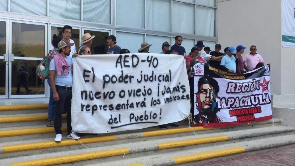 En el mitin, voceros de la Asamblea Estatal Democrática reiteraron su rechazo al proceso de elección de jueces, magistrados y ministros del Poder Judicial, promovido para realizarse el próximo 2 de junio, al que calificaron como un mecanismo que no representa una verdadera transformación en el acceso a la justicia.
