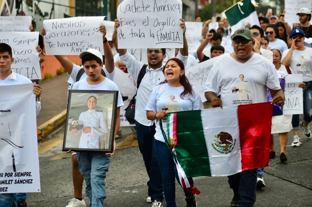 Familiares y amigos de América Yamileth Sánchez, la joven cadete de la Heroica Escuela Naval Militar que perdió la vida en el accidente del Buque Escuela Cuauhtémoc, ocurrido en Nueva York, marcharon en Xalapa, Veracruz, para honrar su memoria y exigir justicia.