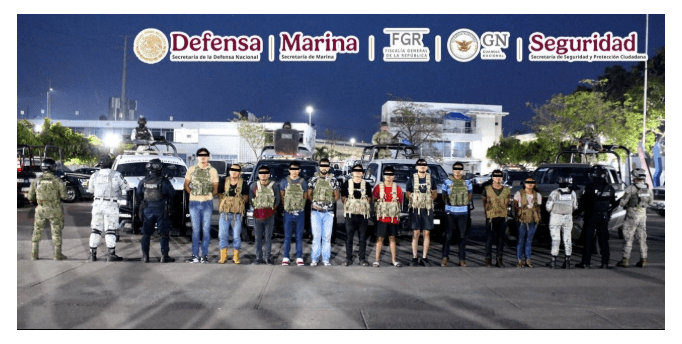 Otros detenidos de nacionalidad mexicana fueron identificados como Erick, El Burrito; Axel, El Negro; Héctor, El Teto; Canuto, La Maestra; Yessenia, La Canela, y Adrián, El Pichi.