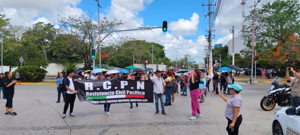 Cancún.- Un grupo de cerca de 50 ciudadanos, pertenecientes al colectivo “Resistencia Civil Pacífica Quintana Roo” bloquearon esta mañana el cruce vial de la Glorieta de “El Ceviche”, en la Tulum con Cobá, en exigencia de la prescripción de sus pagos de predial, luego de un desacuerdo con el secretario general del Ayuntamiento.