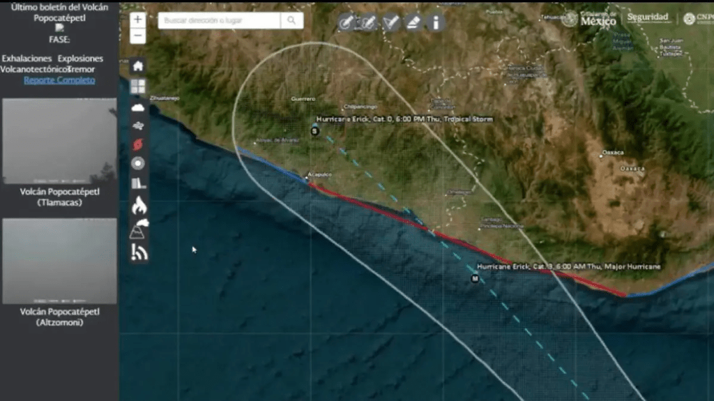 Actualmente, el huracán Erick ha alcanzado la categoría 2 en la escala Saffir-Simpson y, de acuerdo con los pronósticos meteorológicos, podría intensificarse a categoría 3 en las próximas 24 horas. No obstante, la trayectoria del ciclón mantiene su curso hacia el océano, sin impacto directo previsto para territorio chiapaneco.