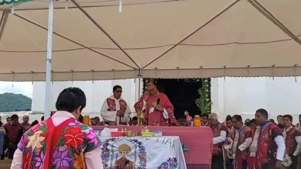 Con una peregrinación, habitantes de la cabecera municipal de Zinacantán, en la región Altos de Chiapas, celebraron la festividad de Corpus Christi. El evento también sirvió como despedida para el obispo auxiliar de San Cristóbal de Las Casas, Luis Manuel López Alfaro, recientemente nombrado obispo titular de la diócesis de Tapachula, quien tomará posesión del cargo el próximo 27 de junio de 2025.
