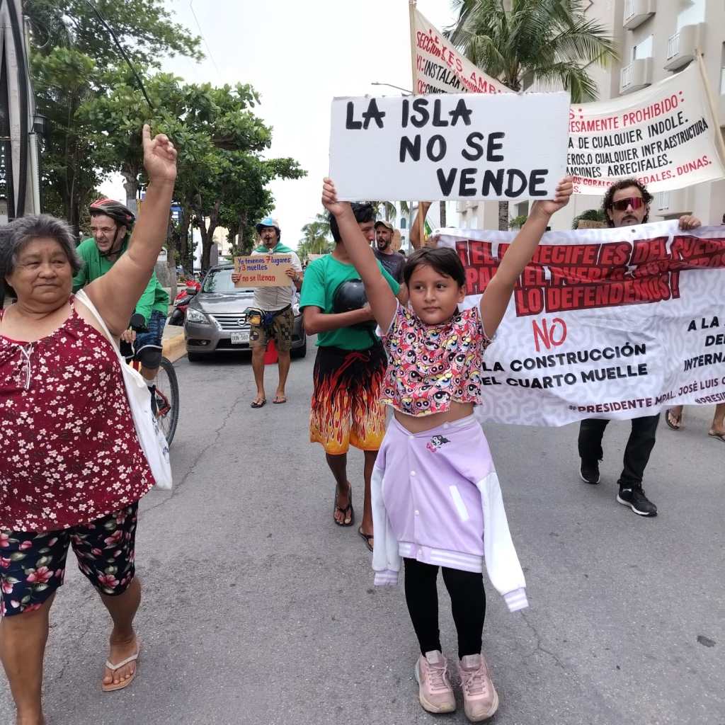 “La isla no se vende”, “El arrecife es del pueblo”, “No más muelles”, “Salvemos Villa Blanca”, eran algunos de los mensajes que portaba el grupo.