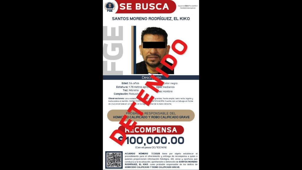 La Fiscalía de Michoacán informó que detuvo a Santos Moreno Rodríguez, alias El Kiko, presunto responsable del homicidio de Salvador Bastida García, alcalde de Tacámbaro.