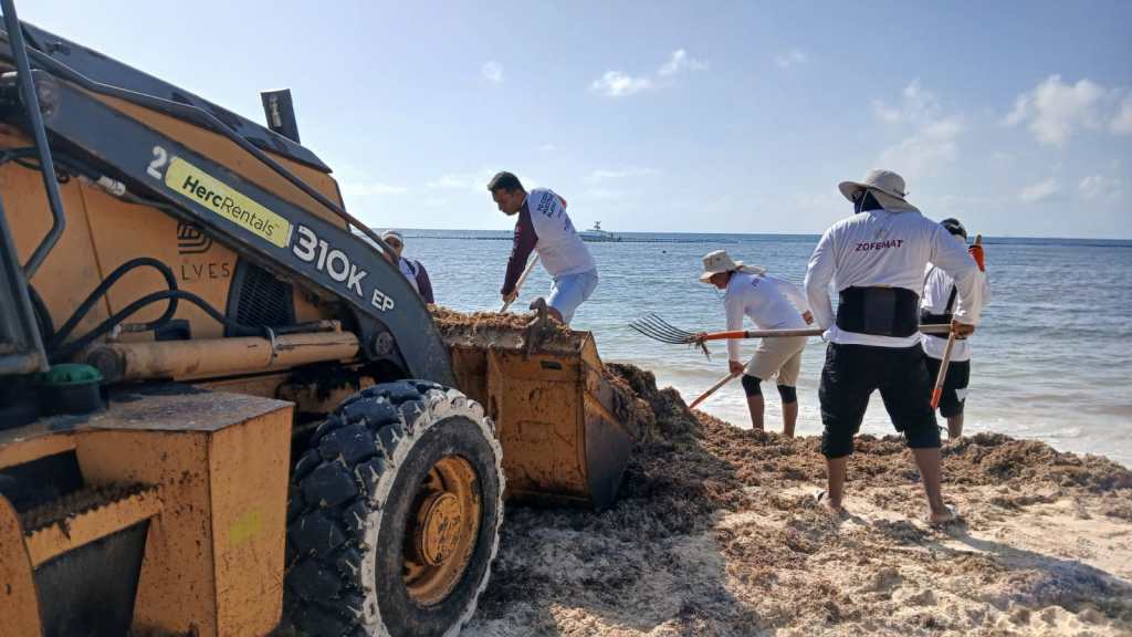 Irving Madrigal indicó que a diario se trabaja para retirar el alga lo más rápido de las playas, y que la presidenta municipal, Estefanía Mercado, ya ha acudido a verificar este esfuerzo.