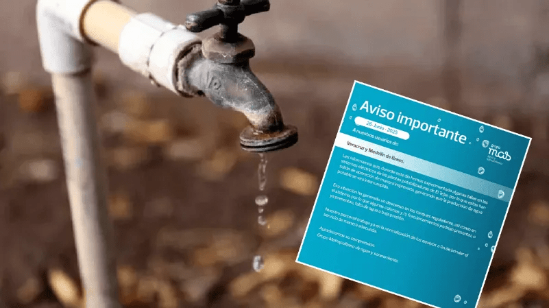 La tarde de este jueves 26 de junio, el Grupo Metropolitano de Agua y Saneamiento (Grupo MAS) informó sobre una falla imprevista en el sistema eléctrico de la planta potabilizadora El Tejar, lo que ocasionó la interrupción del suministro de agua en diversas colonias de los municipios de Veracruz y Medellín de Bravo.