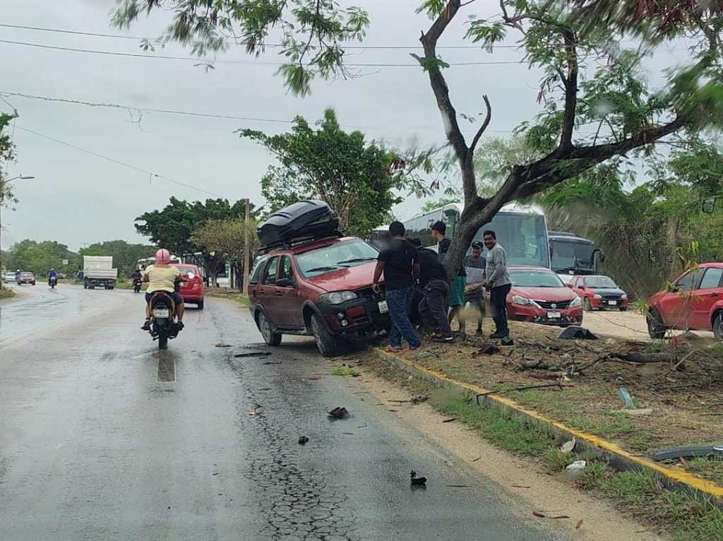 Otra volcadura tuvo lugar en la avenida Antonio Enrique Savignac, en donde un Fiat se estrelló contra el camellón y finalizó volcado en dirección al bulevar Kukulkán.