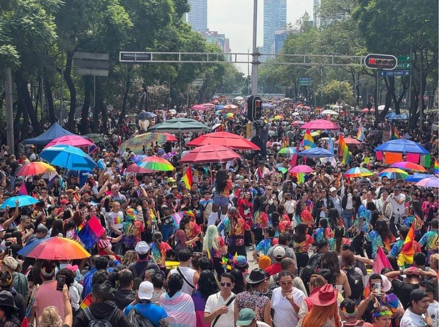 En el Ángel de la Independencia se concentra la mayoría en espera de que inicie, a mediodía, la movilización hacia el Zócalo, donde por la tarde se presentarán diversos cantantes y artistas de la comunidad y aliados.