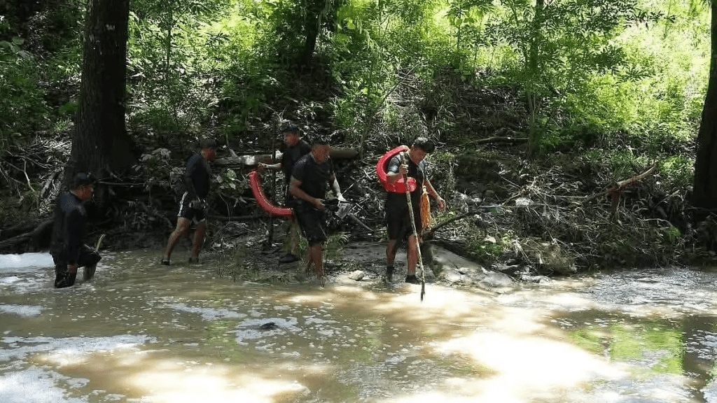En las labores participaron elementos de la Secretaría de Seguridad del Pueblo, la Fuerza de Reacción Inmediata Pakal, la Policía Municipal, Protección Civil y habitantes de comunidades cercanas, quienes recorrieron varios tramos del afluente.