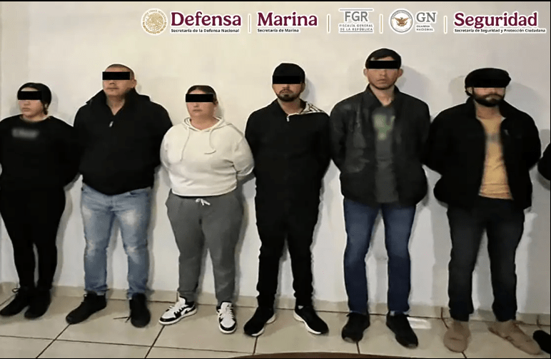 Fuentes federales señalan que los detenidos son Thania Guadalupe Jauregui, de 35 años; Andrea León, de 19 años; Omar Ulises Herrera, de 33 años; Juan Carlos Cruz, de 30 años; Javier Alexander Chávez, de 19 años, y Abel Francisco Canibzalez, de 28 años de edad, a quienes las autoridades señalan como presuntos integrantes de dicha célula delictiva dedicados a venta y distribución de narcóticos.