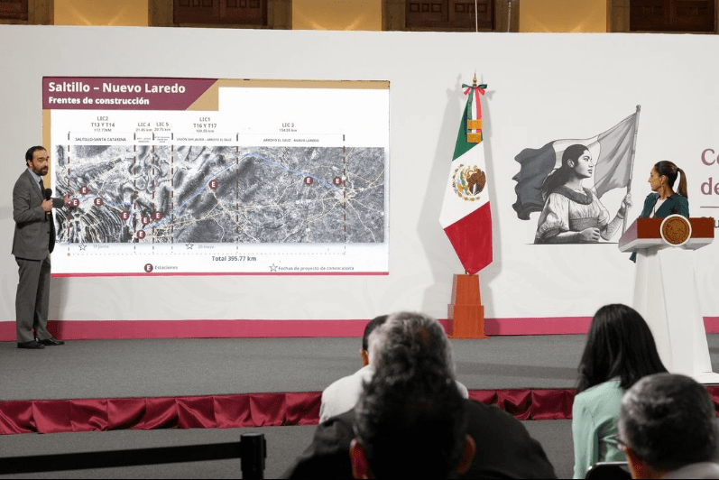 En el caso de la construcción del tren Saltillo-Nuevo Laredo, 394 kilómetros de vías exclusivas para pasajeros, futura integración con la red desde Ciudad de México.