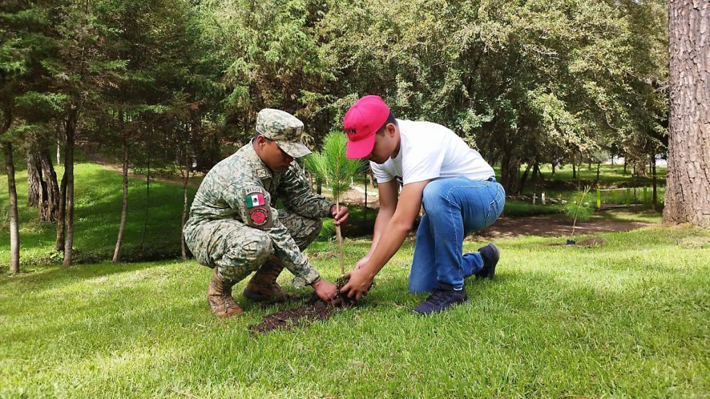 Con el propósito de contribuir al Programa Federal de Reforestación 2025, y en coordinación con el Gobierno del Estado de Chiapas, personal del Ejército Mexicano, con sede en Rancho Nuevo, junto a jóvenes del Servicio Militar Nacional (SMN), realizaron labores de reforestación en el Parque Ecoturístico Grutas de Rancho Nuevo, reafirmando su compromiso con la protección del medio ambiente.