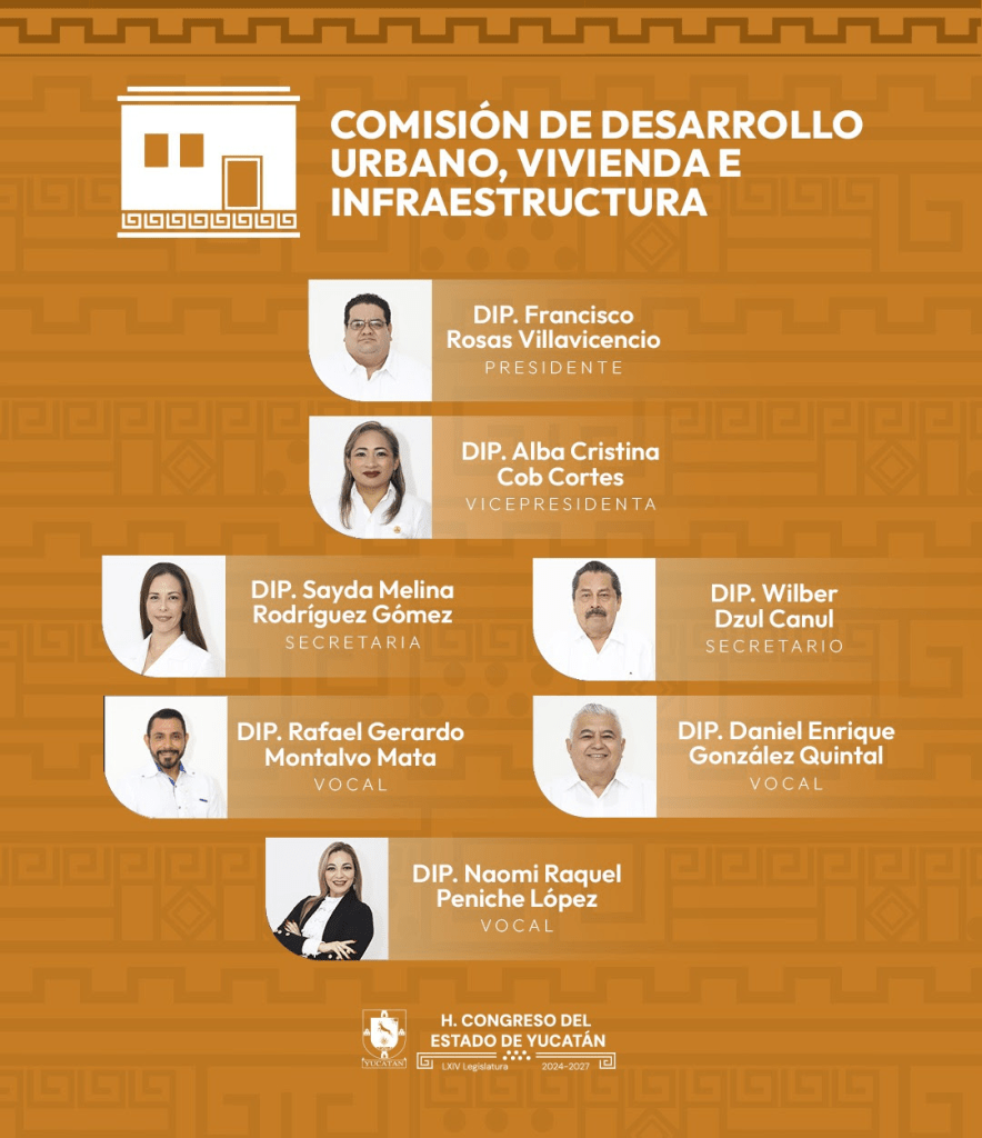 Como parte de los compromisos enfocados en el crecimiento ordenado y sostenible de Yucatán, el Congreso del Estado cuenta con la Comisión de Desarrollo Urbano, Vivienda e Infraestructura, cuyo objetivo principal es estudiar, analizar y dictaminar los asuntos relacionados con el urbanismo, obras públicas, vivienda, tenencia de la tierra, así como comunicaciones y transportes dentro del ámbito estatal.