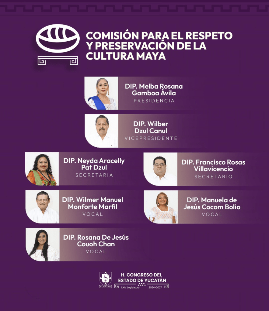 Con el objetivo de proteger, promover y garantizar los derechos del pueblo maya y de las comunidades indígenas en Yucatán, el Congreso del Estado integró la Comisión para el Respeto y Preservación de la Cultura Maya, órgano que tiene como fin principal estudiar, analizar y dictaminar los asuntos relacionados con el reconocimiento y respeto de los derechos fundamentales de las personas descendientes del pueblo maya.