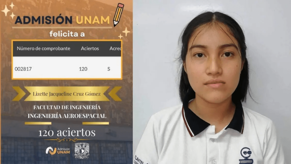 En tanto las autoridades del Cobach emitieron un comunicado en el que felicitan “a la joven Lizette Jacqueline Cruz Gómez, egresada del plantel 16 Ocosingo, por obtener el primer lugar nacional en el examen de ingreso a la Universidad Nacional Autónoma de México, con puntaje perfecto de 120 aciertos de igual número de reactivos en la carrera de Ingeniería Aeroespacial”.