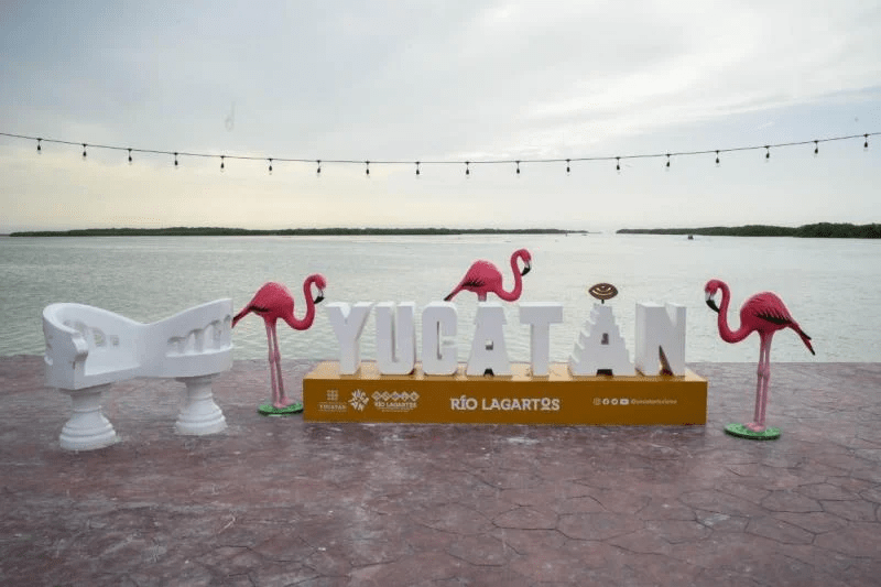Con motivo de la feria tradicional del puerto, el titular de la Sefotur, Darío Flota Ocampo, hizo entrega oficial de los logotipos tridimensionales de la marca Yucatán, un atractivo visual que se suma a la oferta turística de la localidad que incluye letras decorativas, tres esculturas de flamencos y una silla confidente, elaborados en concreto para garantizar su durabilidad.