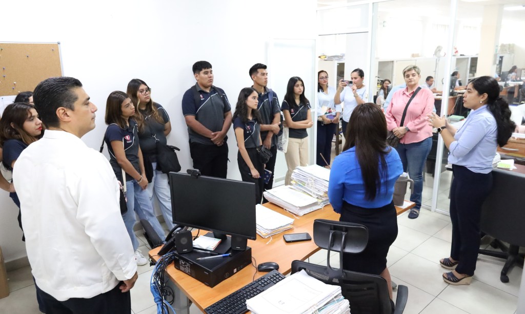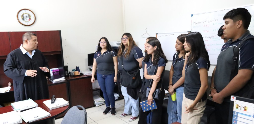 Villahermosa, Tabasco, México.- Estudiantes de la licenciatura en Derecho de la Universidad Vizcaya de las Américas campus Tabasco obtuvieron una experiencia única en un recorrido por las instalaciones de los juzgados civiles y familiares del municipio de Centro, así como el Centro de Especialización Judicial del Tribunal Superior de Justicia (TSJ).