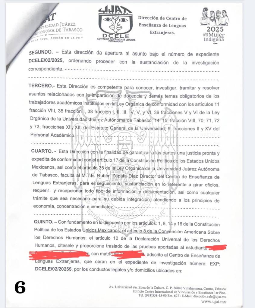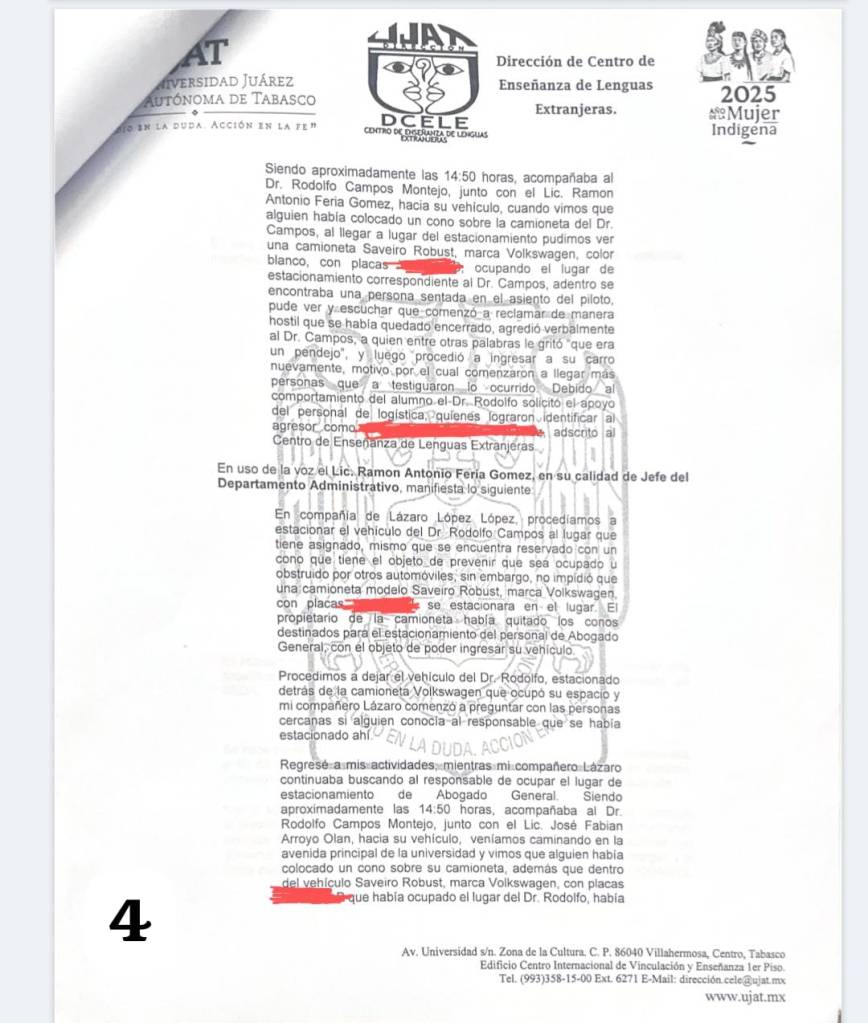 Amén de las contradicciones de los propios testigos, los cuales puede usted corroborar en el documento que aquí se comparte, estimado lector, queda claro que Campos Montejo hace alarde de su rango en la Universidad, e intenta truncar el espíritu de superación del joven estudiante, al que está obligado a cuidar y procurar en su calidad de personal a su servicio. Los alumnos le matan el hambre a él y a todos los funcionarios y servidores públicos de la UJAT.