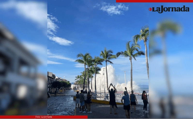 Un fuerte oleaje originado por el huracán Priscilla golpeó severamente y destruyó algunas partes del malecón de Puerto Vallarta, Jalisco, que se mantiene cerrado.