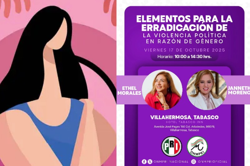 Villahermosa, Tabasco.- El Partido Revolucionario Institucional (PRI) Tabasco y el Organismo Nacional de Mujeres Priistas (ONMPRI), anunciaron la realización del curso “Violencia Política de Género: Elementos para la erradicación”, que se llevará a cabo este viernes 17 de octubre, de 10:00 a 14:30 horas, en el Hotel Tabasco Inn de Villahermosa.