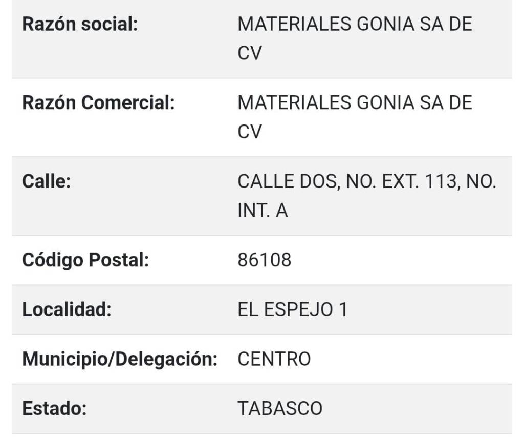 Buscamos la dirección de la super empresa que se dedica a vender estos millonarios equipos, y según su información Fiscal, «Materiales GONIA» tienen su domicilio en la Colonia Espejo 1, Calle Dos, número exterior 113, número interior «A»; resulta ser una modesta vivienda, de interés social, en dónde no cuenta ni siquiera con una cartulina, que indique la razón social de la empresa que vende equipos bastante caros.