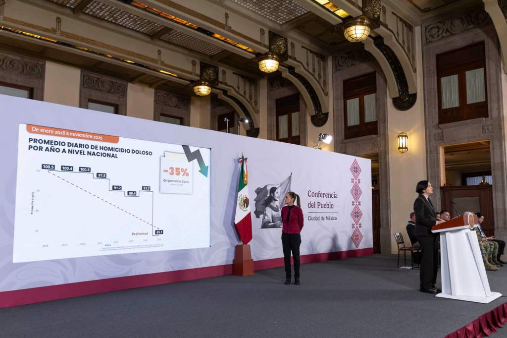 Resaltó que en un análisis del mes de noviembre de entre los últimos 10 años, el de 2025 se perfila como el más bajo, y comparando 2018 con este año, la disminución del homicidio dolosos diario es de 35 por ciento menos.