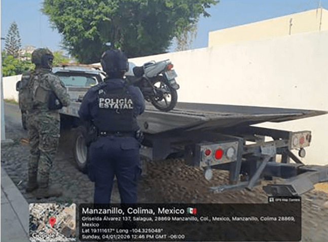 Estas acciones se han llevado a cabo como parte de la Estrategia de Seguridad Pez Vela 2025, y durante el periodo comprendido del 29 de diciembre de 2025 al pasado 4 de enero, se realizó «un despliegue operativo permanente en zonas estratégicas de los municipios de Manzanillo, Tecomán, Minatitlán, Cuauhtémoc, Armería, Villa de Álvarez y Colima».